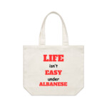 The 'Life isn't Easy under Albanese' ceramic mug is also available.