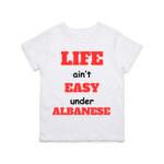 The 'Life ain't Easy under Albanese' Youth/Children's Tee is also available.